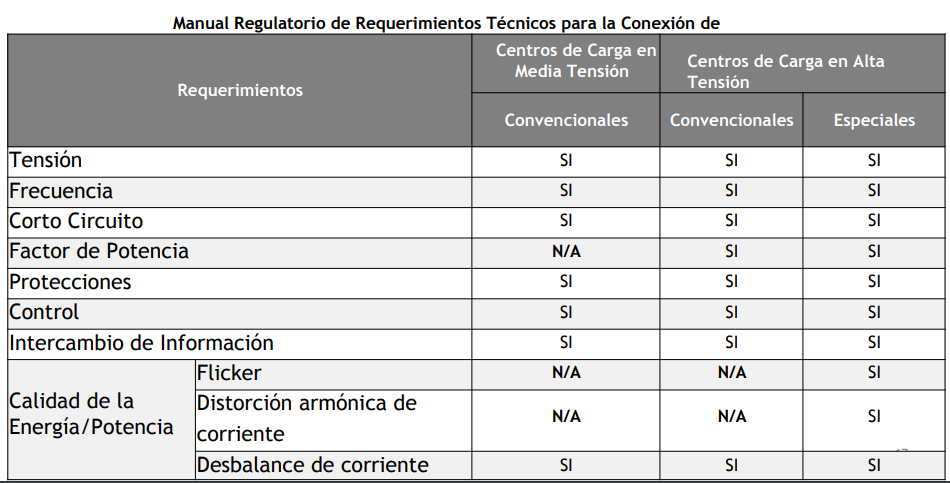 El criterio para determinar su aplicación es el nivel de tensión el que se recibe la energía eléctrica, no el nivel de demanda. Los centros de carga son todos aquellos usuarios conectados en media y alta tensión. Los centros de carga se dividen en 2 grandes grupos: